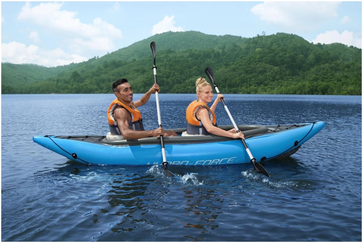 Verhef uw zomer naar een hoger niveau en drijf lekker op het meer, de rivier of de oceaan in de Hydro-Force™ Cove Champion X2 Opblaasbare Kajak. Deze kajak voor twee personen wordt geleverd met alles wat u nodig heeft voor een geweldige dag op het water; de kajak inclusief 2 peddels en een pomp. Deze lichte kajak is ontworpen om snel en gemakkelijk op te zetten en is eenvoudig op te blazen met de meegeleverde Air Hammer™ handpomp. De comfortabele kuip is voorzien van twee verstelbare zitplaatsen met rugleuning voor extra steun. Deze kajak heeft ook veel opbergruimte voor snacks, extra uitrusting of andere waterbenodigdheden. Bovendien navigeert hij gemakkelijk door het water met behulp van de vinnen aan de onderkant, die verwijderbaar zijn om een gemakkelijke en compacte opslag te garanderen. Het vervoeren of aanmeren van deze kajak is een fluitje van een cent met behulp van het omringende grijptouw. Gemakkelijk te gebruiken en gemakkelijk op te bergen – breng uw innerlijke ontdekkingsreiziger naar boven met de Hydro-Force Cove Champion X2 Opblaasbare Kajak.