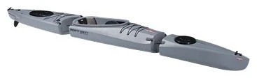 Martini Solo De Point 65 Martini Solo is een modulaire touring kajak met een ruime en comfortabele cockpit. Het unieke aan de Martini is dat het een modulaire kajak is. Een modulaire kayak is opgebouwd uit meerdere delen en kan snel worden opgebouwd en uit elkaar gehaald worden. De Martini Solo bestaat uit de Back section en front section. Deze twee delen bij elkaar vormen de Martini Solo. De losse modules kunnen makkelijker vervoerd en opgeslagen worden dan traditionele kajak’s. Snap-Klik systeem Door het unieke Snap-Klik systeem is de kano snel uit elkaar te halen en in elkaar te zetten. Ook kan er ook een module er tussen gezet worden. Met een Martini Solo mid section kun je de kano uitbreiden naar een twee persoons kano. De Martini Solo is gemaakt van gegoten polyethyleen. Dit is een zeer sterke en onderhoudsvrije kunststof. De kano heeft ook comfortabele zitjes. Deze zitjes hebben een opblaasbare rug en is voorzien van voetsteunen. De bagage kan mee in de waterdichte compartimenten. Deze zijn voorzien van rubberen luiken. De Martini Solo is zeer geschikt voor dag trips of weekend trips op het water. Voor echte expedities is de Point 65 Mercury meer geschikt. De Martini is gemaakt voor meertjes en rivieren maar ook voor open wateren. De Point 65 Martini is een zeer stabiele kayak die voor iedereen toegankelijk is. Nog nooit eerder was het zo leuk en zo gemakkelijk om een kajak te bezitten.